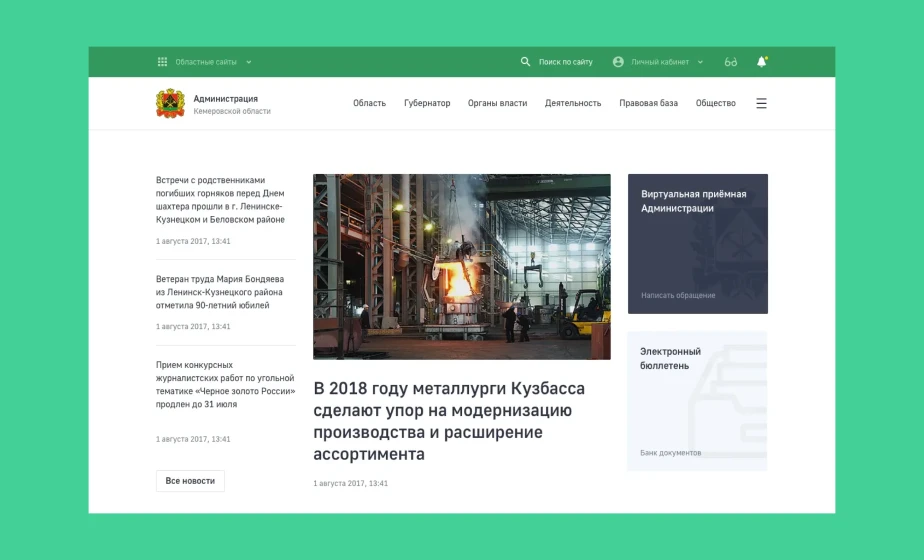 Сайт и единая дизайн-система для всех интернет ресурсов региона. Обновлена цифровая инфраструктура и упрощено управление сайтами Кузбасса